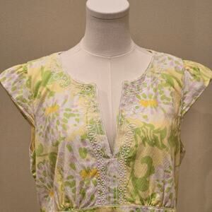 Lilly Pulitzer Jubilee Shift Dress Cap Sleeve Embroidered Pockets V-Neck Size 14