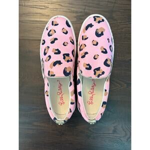 Lilly Pulitzer Julie Seeing Spots Pink Blossom Leopard Canvas Slip On Size 7