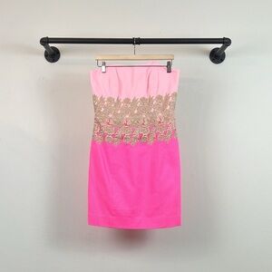 Lilly Pulitzer Kade Strapless Embroidered Mini Dress Pink/Gold (No Straps)