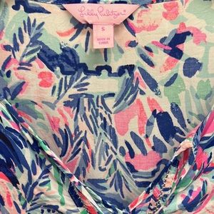 Lilly Pulitzer Kahli Bell Sleeve Top in Blue Grotto “Move it or Lose it” S