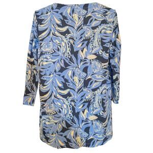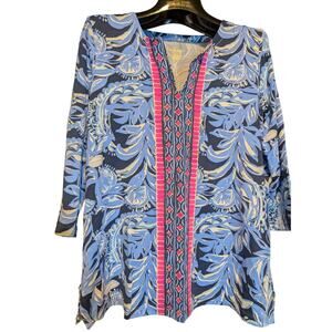 Lilly Pulitzer Karina Blue Pink 3/4 Sleeve Tunic Zanzibar Fish UPF 50 Size Large