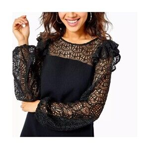 Lilly Pulitzer Karolina Women Size 12 Black Lace Crochet Ruffle Shift NEW Dress