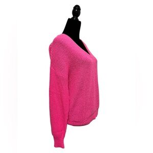 Embrace a bold look with this Lilly Pulitzer sweater, featuring a vibrant pink hue and a stylish V-neckline. The chunky knit texture and roomy sleeves offer a cozy and relaxed fit, perfect for adding a touch of elegance to your wardrobe.