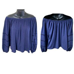 Lilly Pulitzer Katt Navy Off TheShoulder Blouson Sleeve Top