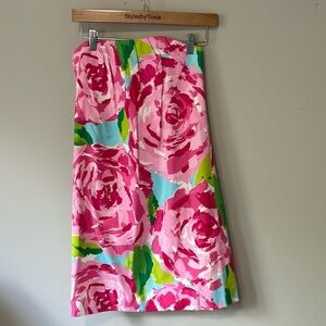 Lilly Pulitzer Keetan Dress First Impressions Pink Roses Holy Grail Strapless 0