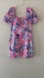 Vibrant floral mini dress with puff sleeves. Features a mix of pink, blue, and purple hues.