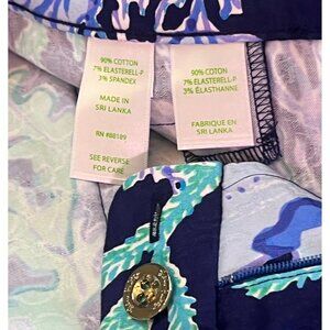 Lilly Pulitzer Kelly Skinny Ankle Pants Deep Indigo Coral Jacquard Textured - 0
