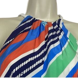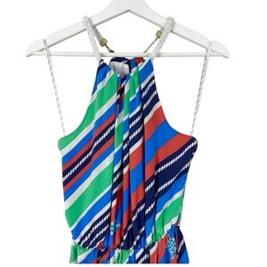 Lilly Pulitzer Kennett Silk Halter Dress in Multi Overboard Stripe Sz XS