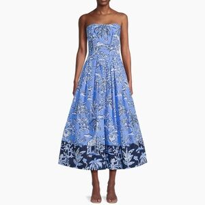 Lilly Pulitzer Kenni Midi Dress Blue Floral Floral Strapless Cotton NWT