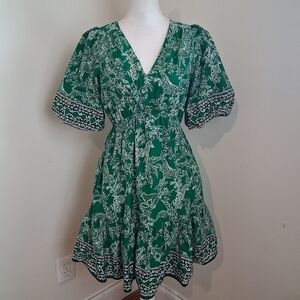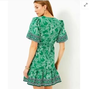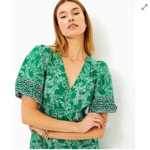 Lilly Pulitzer Kentlee Puff Sleeve Cotton Dress In Fiddle Leaf Safari Size 6