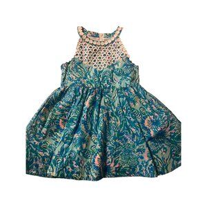 Lilly Pulitzer Kinley Dress Girls Size 3 Surf Blue Coral of the Story Excellent
