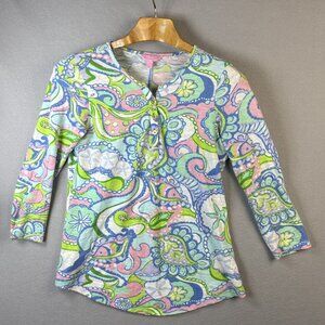 Lilly Pulitzer Kirby Top 1/4 Button Up 3/4 Sleeve Cotton Size Small Made in Peru