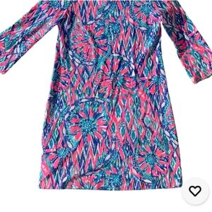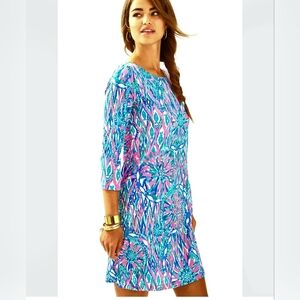 Lilly Pulitzer Knit Bay Dress Tiki Pink Shake It Up Print Size Small Blue Pink
