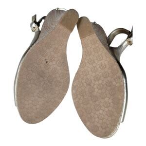 Lilly Pulitzer Kristen Gold Metallic Peep Toe Sling Back Wedge Sandals Sz 7