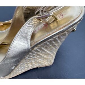 Lilly Pulitzer Kristen Metallic Gold Peep Toe Sling Back Wedge Heels Size 8