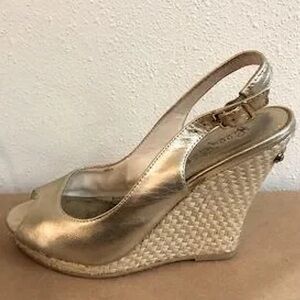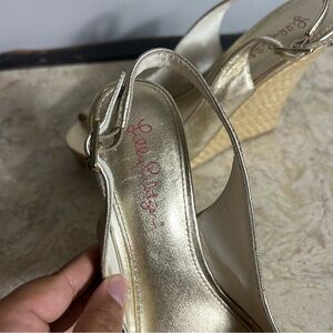 Lilly Pulitzer Kristin Slingback Wedge Sandal Heel Metallic Champagne
