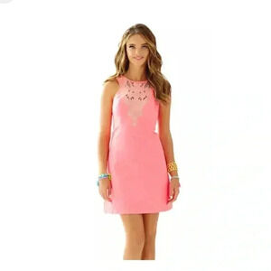 Lilly Pulitzer LARGO CUT IN SHIFT DRESS Size 6 Coral Pink with Gold