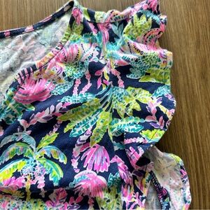 Lilly Pulitzer Lacie Peplum Top Blue Pink Floral Small Ruffle Flutter Sleeve