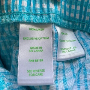 Lilly Pulitzer Lagoon 100% Linen Seabreeze Blue Along The Same Line Shorts (S)