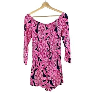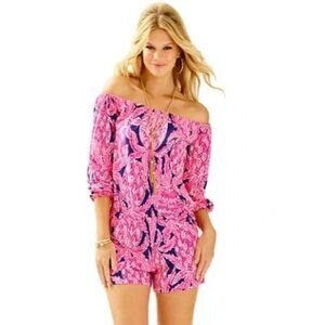 Lilly Pulitzer Lana Long Sleeve Romper Pink Coco Safari XS