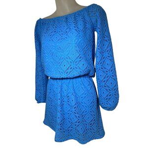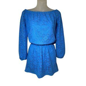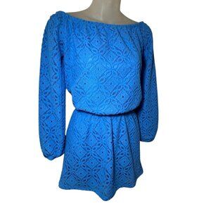 Lilly Pulitzer Lana Off The Shoulder Skort Romper Blue Thistle Trellis Lace XXS