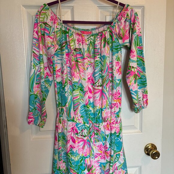 A trending off-the-shoulder neckline and soft, printed jersey fabric combine to create our Lana Skort Romper. This long-sleeve style pairs the ease of shorts with the chic silhouette of a skirt. Wear with your favorite sneakers for days around town, or sandals for an evening out with friends.Excellent used condition, no flaws.