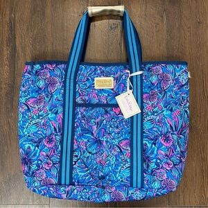 🆕 Lilly Pulitzer Large Picnic Cooler Blue Floral Shells & Bells Tote Bag NEW