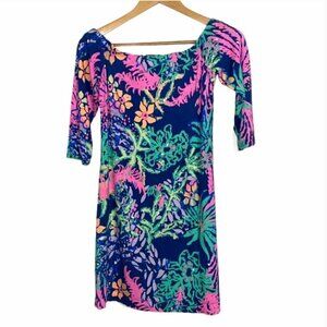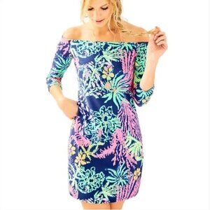 Lilly Pulitzer Laurana off the shoulder, straight fit mini dress that you can dress up or down! Size S