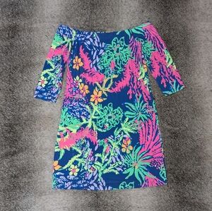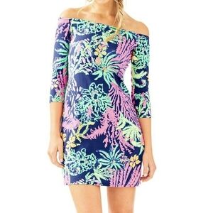 Lilly Pulitzer Laurana Off The Shoulder Dress Indigo All A Glow Women's Small