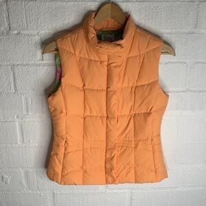 Lilly Pulitzer Lauren Puffer Down Vest Floral Neon Peach Orange Zip Up Vest XS