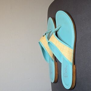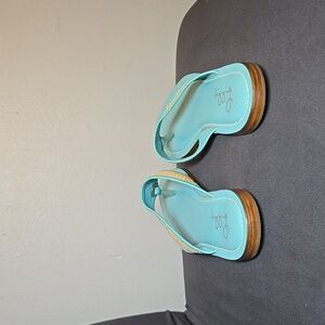 Step out in style with these chic aqua and tan sandals. Perfect for any casual outing, these shoes offer both comfort and elegance.