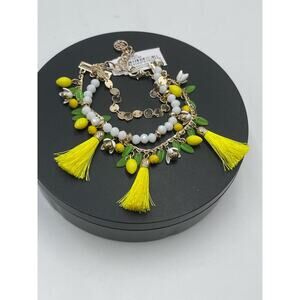 Lilly Pulitzer Lemon Grove Triple Strand Beaded Tassel Gold Tone Bracelet New