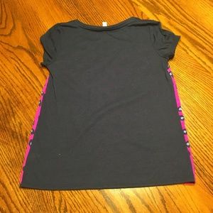 Silk leopard print on the front with a knit back (to make it more comfortable) EUC.