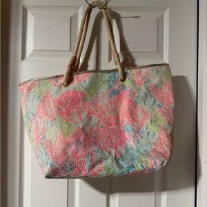 Lilly Pulitzer Let's Cha Cha Shoreline Tote. Some fading, and small stain pictured