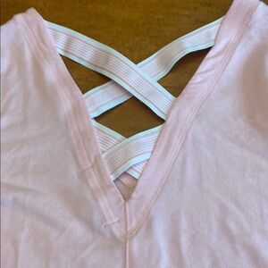 Elegant light pink tee with criss-cross back. Soft and stylish for any occasion.