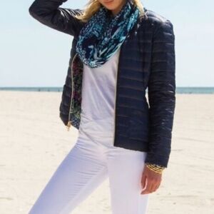 Keywords: Lilly Pulitzer, puffer jacket, down jacket, coat, outdoors, winter, cold weather, warm, colorful, vibrant, quality, everyday wear, preppy, errands, reversible, versatile, feminine, timeless, travel, luxury, casual