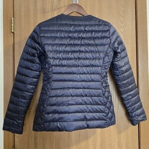 Lilly Pulitzer Lilah reversible quilted puffer down jacket in the color/print: not too catty and bright navy, size XXS. Features: gold zipper hardware and pockets on both sides. In great prelove condition.