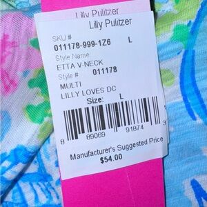 Lilly Pulitzer Lilly Loves DC Etta Short Sleeve V Neck tee shirt size Large NWT