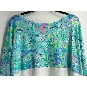 Lilly Pulitzer 'Lilly Loves Texas' White Colorful Long Sleeve Tee Shirt Sz XXL