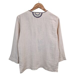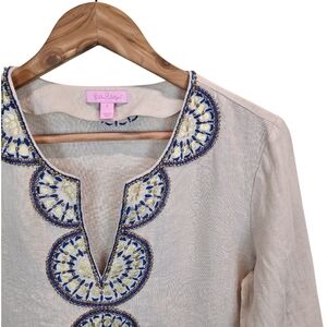 Lilly Pulitzer Linen Beaded Amelia Tunic Top Womens Sz Small Tan Oyster Shell