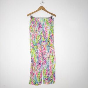 Lilly Pulitzer Linen Palazzo Pants XS Tropical Print Wide Leg Resort Wear