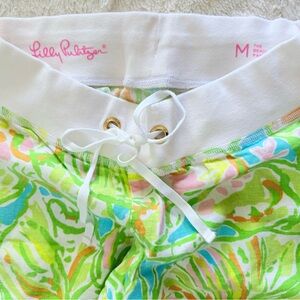 Brighten up your wardrobe with these gorgeous Lilly Pulitzer linen pants in the vibrant Elephant Ears print. The tropical mix of green, pink, blue, and white makes them perfect for warm-weather outings, beach vacations, or casual weekends.