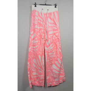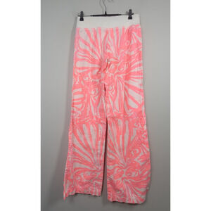 Lilly Pulitzer Linen Pull On Pants XS Womens Drawstring Wide Leg Pink White