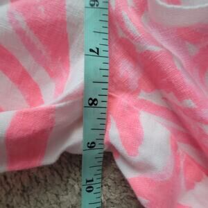 Lilly Pulitzer “The Beach Pant” in size XS. 100% linen in a bold pink + white tropical print. Features elastic drawstring waist with gold-tone tips, wide leg silhouette, and relaxed pull-on fit — breezy and perfect for summer or vacation wear.