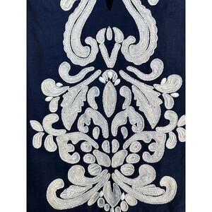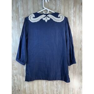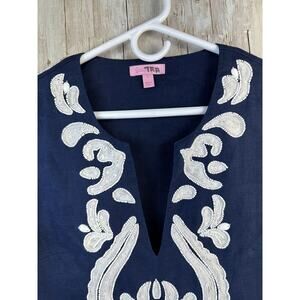 Lilly Pulitzer Linen Tunic Top Women S Blue White Embroidered Sequined Beaded