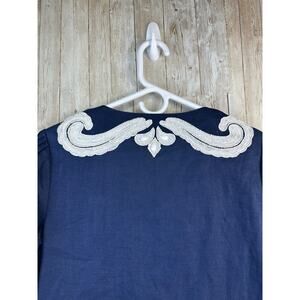 Lilly Pulitzer Linen Tunic Top Womens S Blue White Embroidered Sequined Beaded