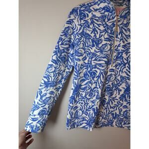 Lilly Pulitzer Lobstah Roll Skipper Popover Blue Lobster Quarter Zip Sz S EUC