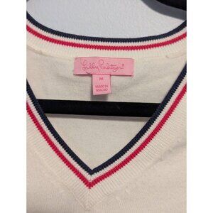 Lilly Pulitzer Long Sleeve Shirt Size M White Stretch Vintage V Neck Logo