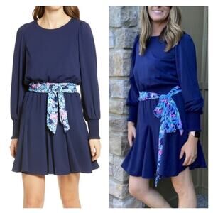 Lilly Pulitzer Lorella Long Sleeve Stretch Dress NAVY NO PRINTED SASH size 16