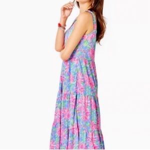 Lilly Pulitzer Loro Midi Tiered Dress - Size L - Blue Peri Sunrise Bay